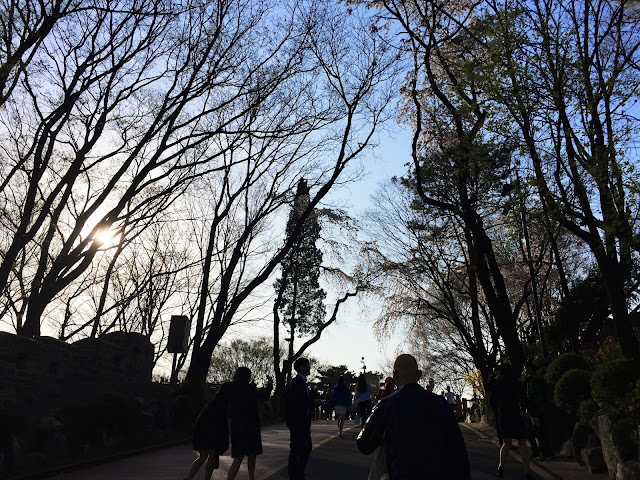 巴士司机应该是开了很多年的巴士,上南山的路程像上台湾清境的路程、也像上云顶的路程,弯弯曲曲,旁边就是悬崖的那种,对,就是你在电视里会看到巴士在悬崖那里奔驰的那种画面。我是对着窗口站着的,虽然可以居高临下地眺望整个首尔盛开的樱花,可是看到山下,而且司机在弯弯曲曲的小路上完全没有踩刹车的情况下,整个路程我整个人是呆滞地抵达目的地,还好萧先生不是对着窗口的,他有惧高。车程一路上出了看到樱花,也可以在快抵达山顶时看到很多人气喘喘地正在努力地往上爬。
